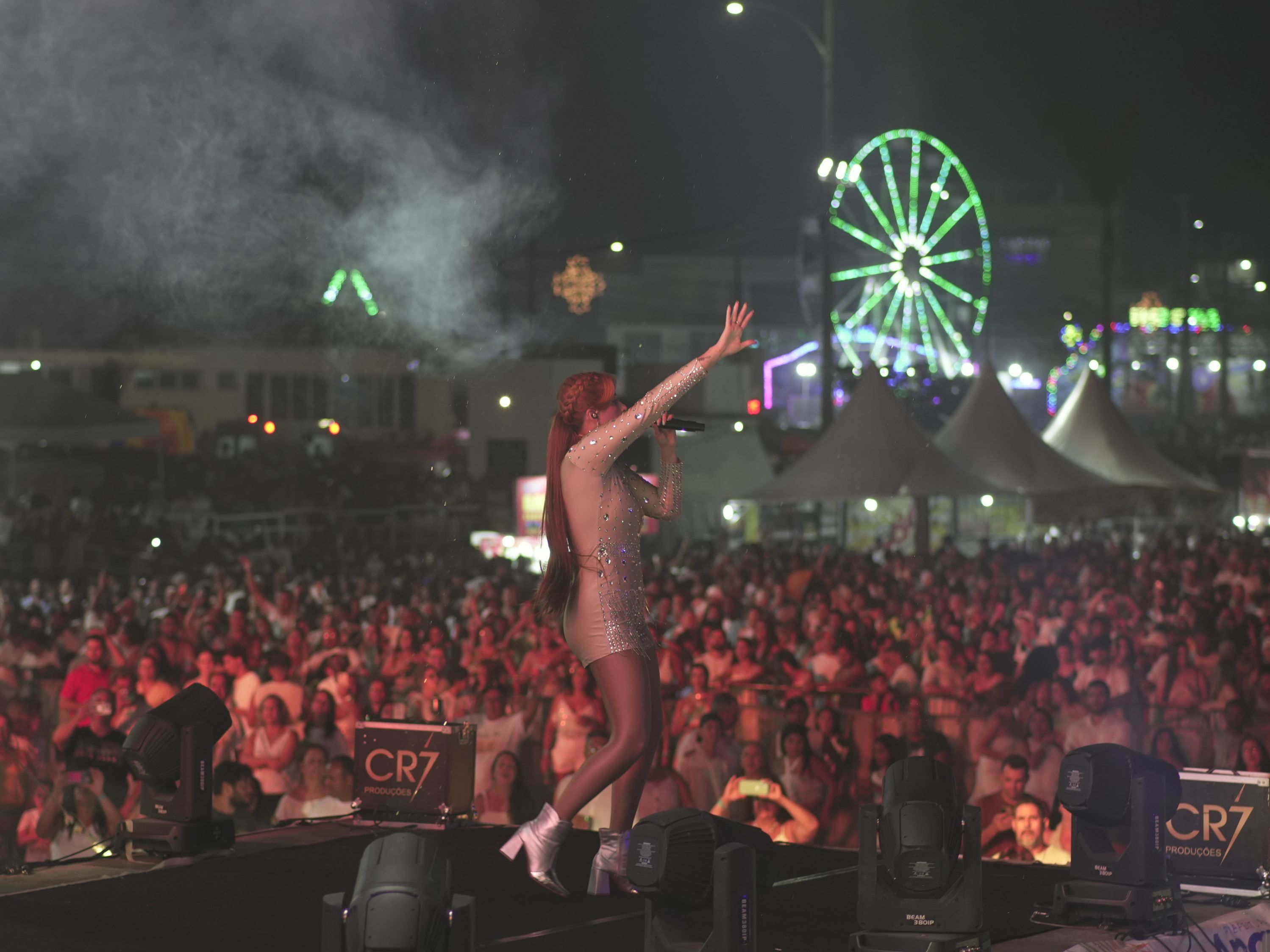 Após a tradicional queima de fogos à meia-noite, a chegada de 2026 foi celebrada ao som da cantora Raylane Mendes, que comandou o show da virada na Praia do Anil. Com cerca de uma hora e meia de apresentação, Raylane animou a multidão com sucessos autorais como “A Culpa É da Cachaça”, “Tum Tum Tum” e “Chumbo Trocado”, além de releituras do sertanejo, axé e pagode.