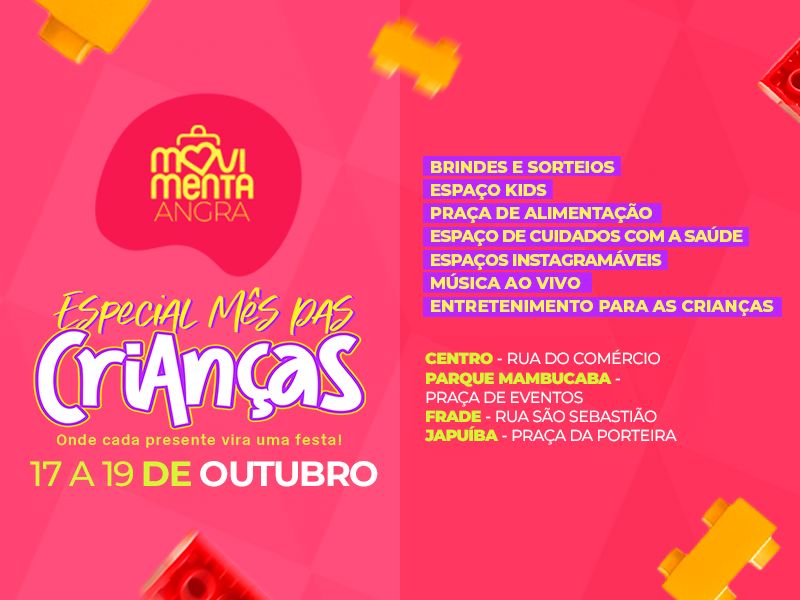 Para celebrar o Dia das Crianças, a Prefeitura de Angra dos Reis, por meio da Secretaria de Desenvolvimento Econômico, promove mais uma edição do Movimenta Angra. A iniciativa tem como objetivo fortalecer o comércio local e, ao mesmo tempo, oferecer lazer e diversão para toda a família.