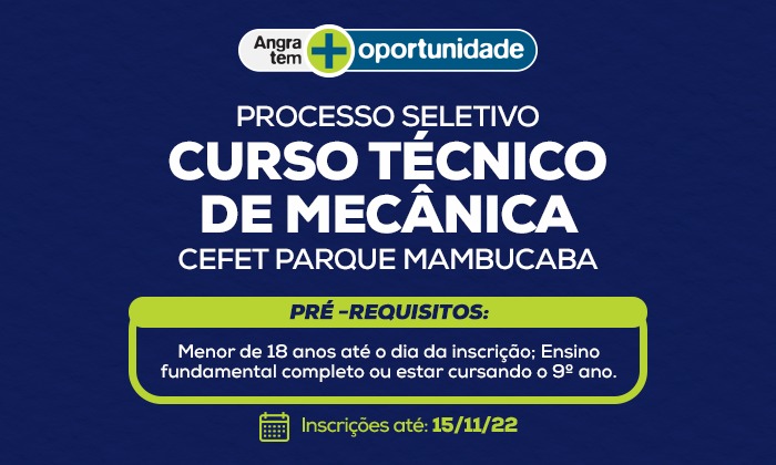 26 de outubro de 2022Processo seletivo para o curso técnico em mecânica no CEFET