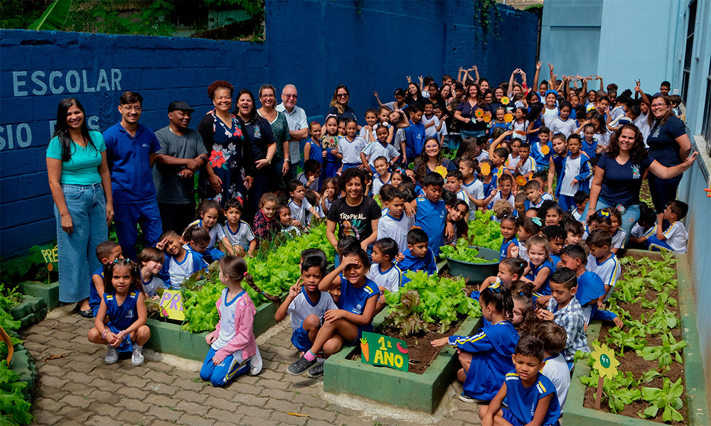 Horta cultivada por alunos produz alimentos para a merenda