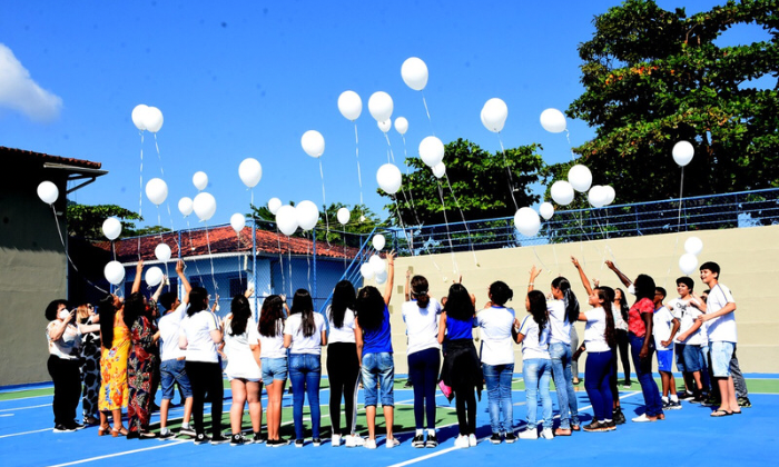 Alunos da E.M. Benedito dos Santos soltam balões com mensagens para a comunidade