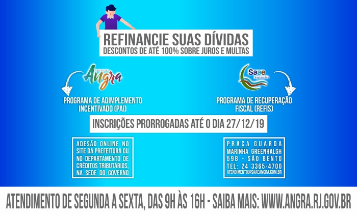 15 de dezembro de 2019Prefeitura e Saae prorrogam campanhas para inadimplentes